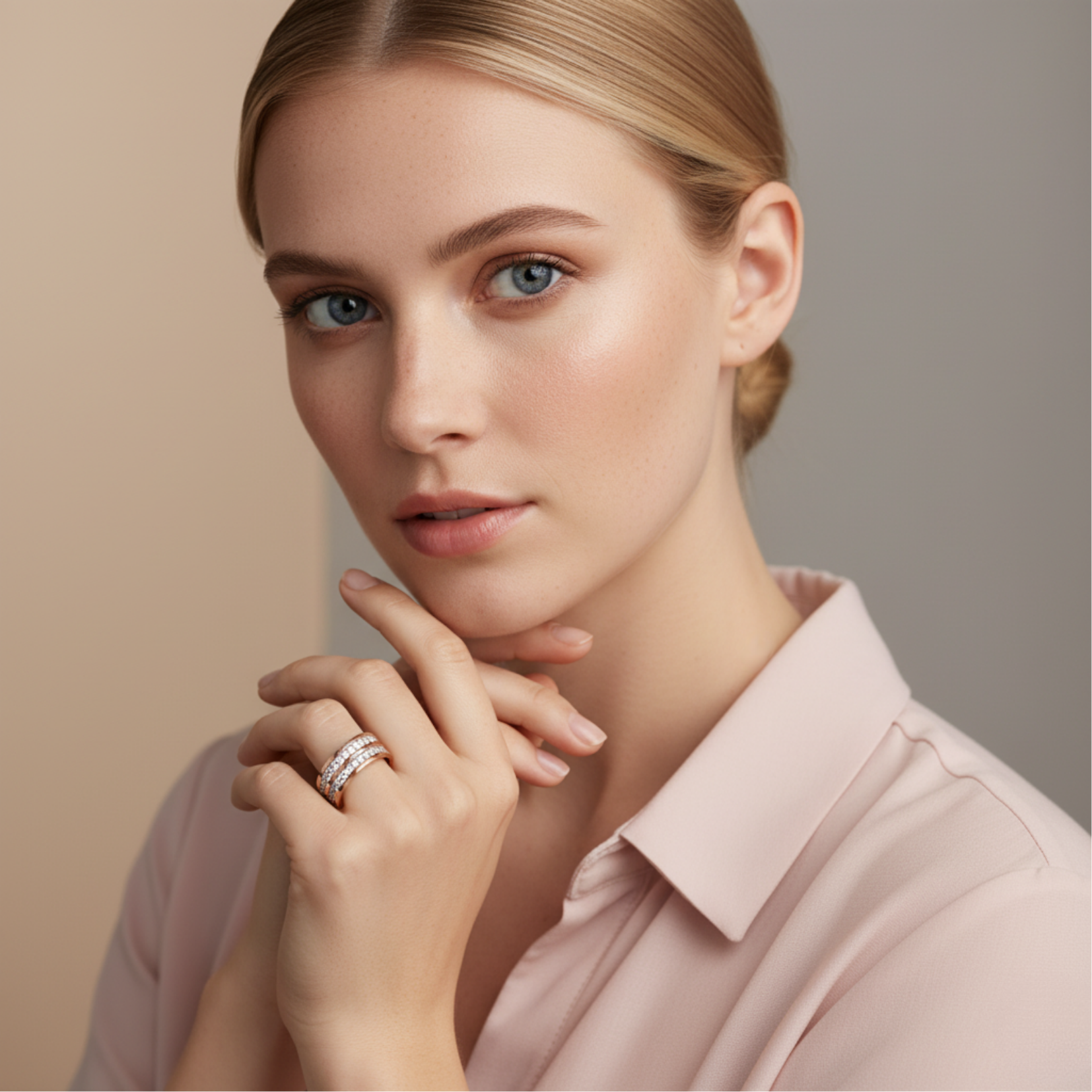 C’est à ce moment-là qu’est née l’idée : créer des bagues antistress pensées pour les femmes comme moi, comme nous. Des bagues belles, modernes, mais surtout utiles au quotidien. Des bagues qui permettent de se recentrer, d’apaiser l’anxiété, de retrouver un geste rassurant et maîtrisé… sans renoncer à l’élégance.